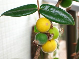 Encontrada principalmente nos estados de Santa Catarina, Rio Grande do Sul, Paraná e São Paulo, a uvaia é uma fruta azedinha que pode ser consumida in natura (para quem gosta de coisas azedas – *salivando*) ou em sucos e compotas. Sua árvore é bastante utilizada em projetos de reflorestamento, pois a uvaia atrai muitos passarinhos, que espalham as suas sementes. Sua época vai de setembro à janeiro.
